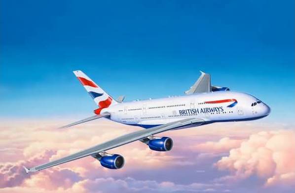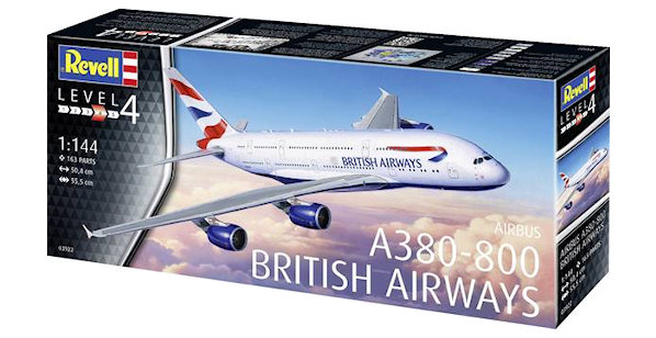 Model van de Airbus A380, het grootste commerciële vliegtuig ooit gebouwd in massaproductie. British Airways ontving in 2013 de eerste van 12 A380 afgeleverde toestellen. In de standaardconfiguratie kunnen ze 469 passagiers vervoeren .