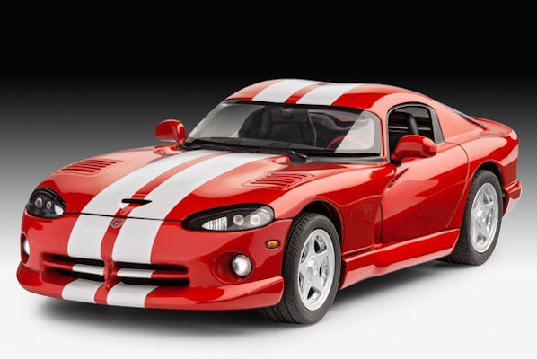 Modelbouwkit van deze rasechte sportwagen met een vermogen van meer dan 400 pk, de typische golving in het dak en de legendarische 8 liter tien cilindermotor.